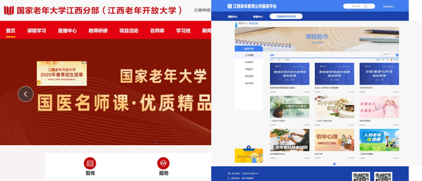 在学校自建的江西省终身学习网上专门开设了“社区书院”和“老年大学”专栏,围绕老年朋友关注的“主动健康、休闲娱乐、技能提升、银发圆梦、地方特色”五大主题,精心打造了2504个课程资源和133门特色课程,满足老年学员多样化学习需求。此外,学校积极对接全国老年教育公共服务平台,共享其海量老年教育课程资源,进一步拓展学习资源的广度与深度,最大限度满足老年学员的学习需求。