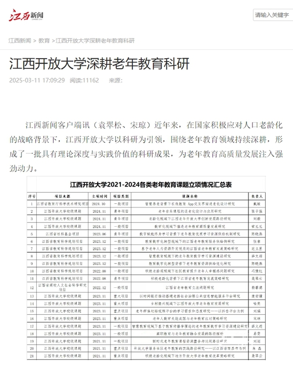 近年来,在国家积极应对人口老龄化的战略背景下,江南官方体育官方入口(China)官方网站以科研为引领,围绕老年教育领域持续深耕,形成了一批具有理论深度与实践价值的科研成果,为老年教育高质量发展注入强劲动力。