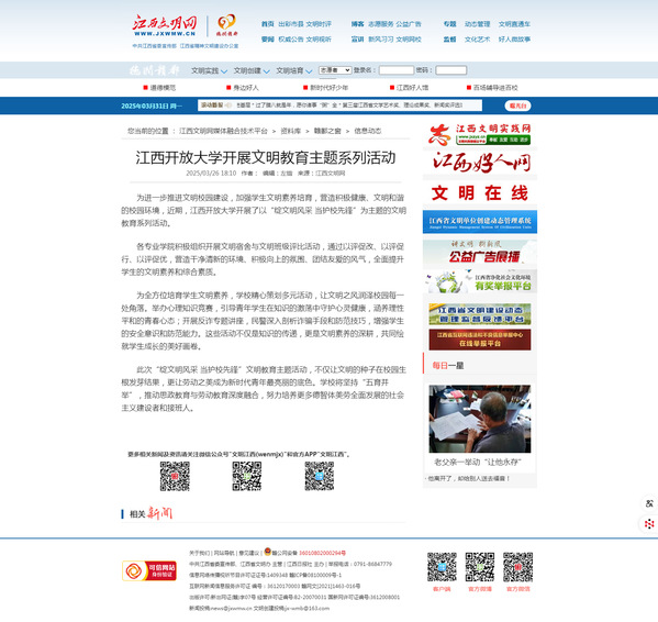 为进一步推进文明校园建设,加强学生文明素养培育,营造积极健康、文明和谐的校园环境,近期,江南官方体育官方入口(China)官方网站开展了以“绽文明风采 当护校先锋”为主题的文明教育系列活动。