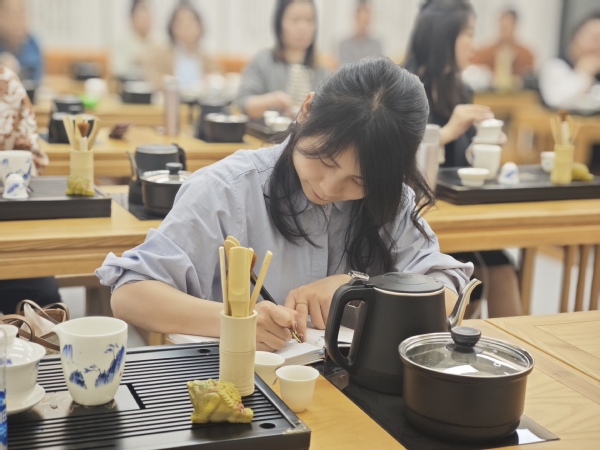 开班首日,四门特色课程同时开讲。在“茶艺与茶席设计”课堂上,人社部高级茶艺师多老师正在向学员们展示泡茶前期准备工作,学员们认真记录着水温、注水手法等细节。“平时工作忙,很少有机会静下心来了解这些传统文化,没想到在夜校能学到这么专业的茶艺知识,夜晚来这里充电真的太值了!”一位学员边品茶边分享感受。