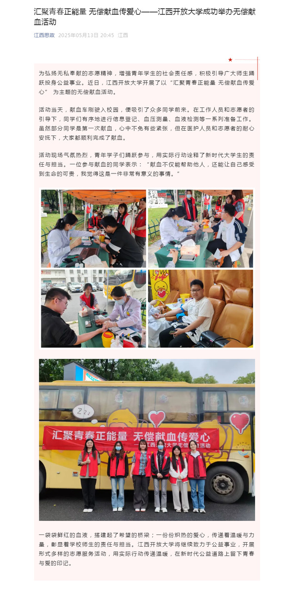 为弘扬无私奉献的志愿精神,增强青年学生的社会责任感,积极引导广大师生踊跃投身公益事业。近日,江南官方体育官方入口(China)官方网站开展了以“汇聚青春正能量 无偿献血传爱心” 为主题的无偿献血活动。原文地址:https://mp.weixin.qq.com/s?__biz=MzI1OTM4MDMzMA==&mid=2247611514&idx=3&sn=6f4bfc5f95fc14e9591bc71c8e8d609b&chksm=eb27c7f923234d1e4973802e24a9f1912a9a66f1bb756ab2d98aff63a79cb4f3a76b0bd8b809&mpshare=1&scene=1&srcid=0514SsHV0ZNy8oTCHZXxDReH&sharer_shareinfo=b8e7142a9d91ad2fcc17a89678cc4a27&sharer_shareinfo_first=b8e7142a9d91ad2fcc17a89678cc4a27&exportkey=n_ChQIAhIQk%2BE5q6W3Zg4Xjn8Xlyk7GxL1AQIE97dBBAEAAAAAAKGfLv2wlqQAAAAOpnltbLcz9gKNyK89dVj0P7xa9A0%2FRWt79alvOYPQ975sE6LRBxjLxMIlBdRGG7Nnlupke0Ykk806Y54JCL0BAPfGLkzuSFXFEkZln9bJWl7W35F4h14GbcdxS%2BkLmhdJYHXuJIdDn%2BhMpGrqpDEd%2BrcQ2w8zMEnfrwuyfKq6iEgXGEqwaLEcIk%2BqspEiG5vFiv4zfawVjQv5P6FGgqrxXt%2FzlXOT1sfHuNtcP%2FXMAD7KtmgTWW30kbSTaWV42GQo0bYuWQzqwuxJ3BTCG%2BHdRlfnklWndpj%2BaQbOwbNq&acctmode=0&pass_ticket=u%2FTyHvUEU3GWhPUExlawv%2BQF98iJM%2FObhus5LfVB%2BCfsqGXc0bHBudk9FqB%2FPaoB&wx_header=0#rd (审校:罗楚颖 徐星星 张明)
