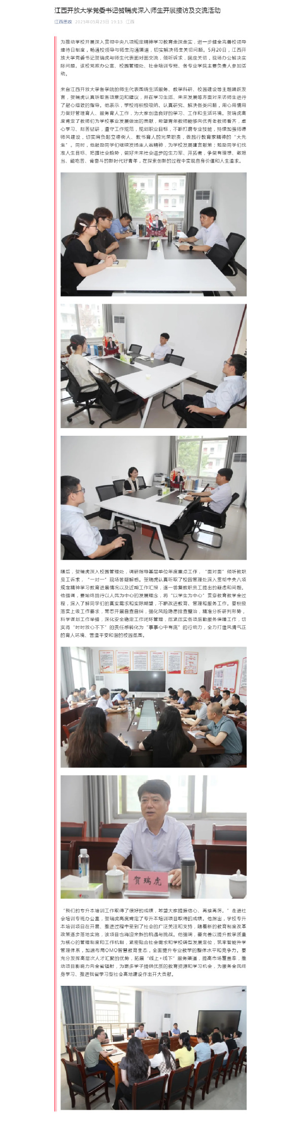 为推动学校开展深入贯彻中央八项规定精神学习教育走深走实,进一步健全完善校领导接待日制度,畅通校领导与师生沟通渠道,切实解决师生关切问题。5月20日,江南官方体育官方入口(China)官方网站党委书记贺瑞虎与师生代表面对面交流,倾听诉求,回应关切,现场办公解决实际问题。该校党政办公室、校园管理处、社会培训专班、各专业学院主要负责人参加活动。