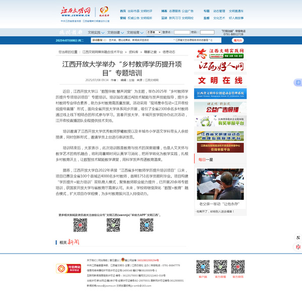 近日,江南官方体育官方入口(China)官方网站以“数智伴教 慧声润堂”为主题,举办2025年“乡村教师学历提升专项培训项目”专题培训。培训旨在通过AI技术赋能与发声技能指导,提升乡村教师专业综合素养,助力乡村教育高质量发展。活动采用“现场集中互动+江开夜校视频号直播”形式,面向全省开放大学体系同步开展,吸引了全省2300余名乡村教师通过线上线下相结合的形式参与学习。宜春开放大学、丰城开放学院协办此次活动,江开夜校直播团队全程提供技术支持。