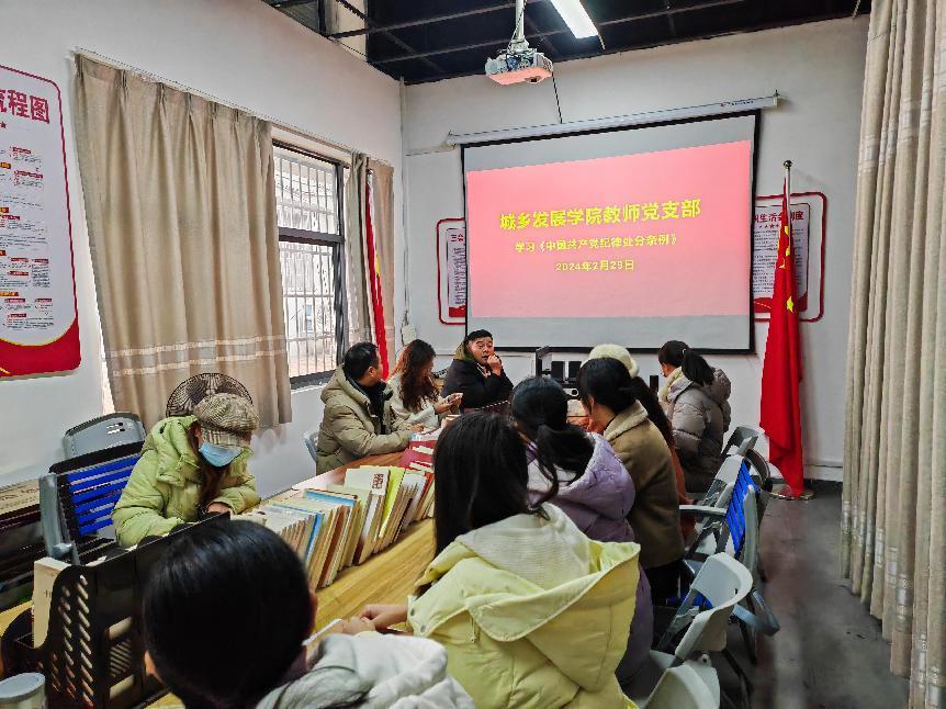 2月29日下午,城乡发展学院教师党支部开展“深入学习《中国共产党纪律处分条例》”主题党日活动,并展开专题研讨,支部全体党员参加。