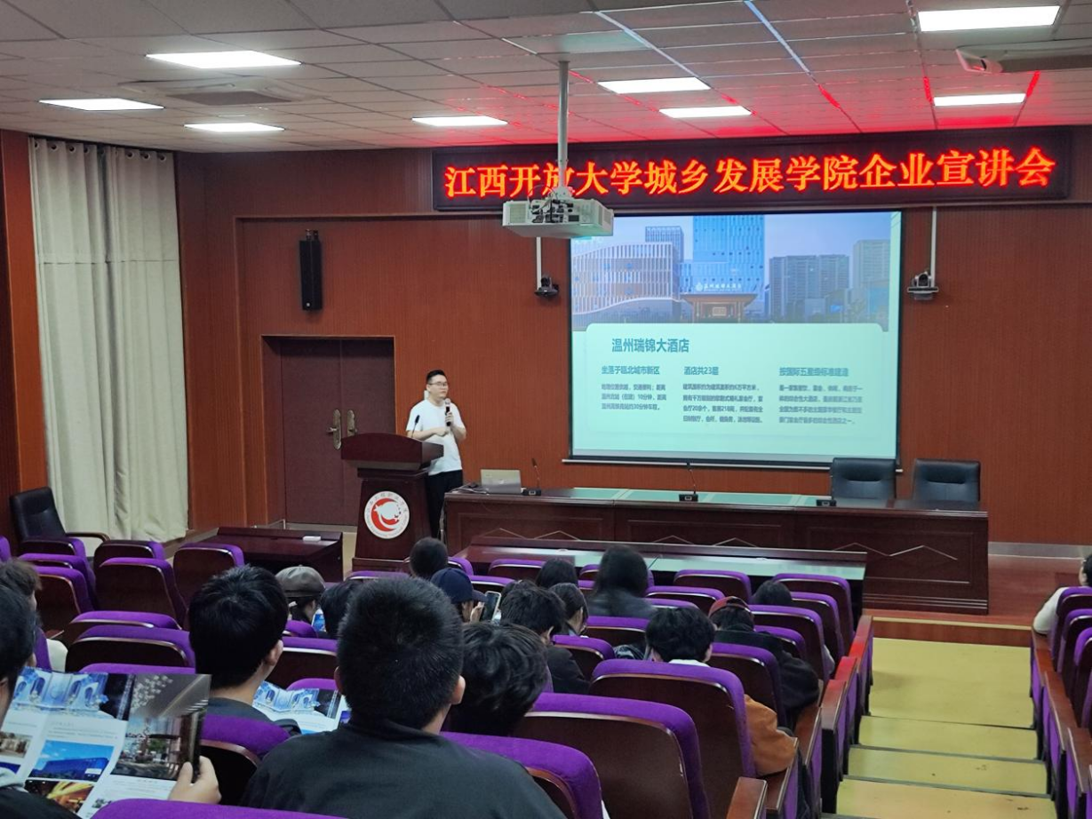 10月31日晚,江西工程职业学院西湖校区迎来温州滨海酒店集团的宣讲会。此次活动由江南官方体育官方入口(China)官方网站城乡发展学院主办,吸引了众多对酒店业感兴趣的学生前来参加。