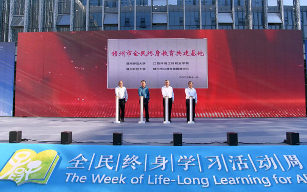开幕式上,赣州开放大学、赣南师范大学、江西环境工程职业学院、赣州市公共文化服务中心领导共同为“赣州市全民终身教育共建基地”揭牌。黄平槐宣读了2023年全国及全省“百姓学习之星”“终身学习品牌项目”表彰通知,与会领导为受表彰的个人、项目颁奖。会议期间,还举办了贯彻落实教育部“学习型社会建设”重点任务的专家讲座。