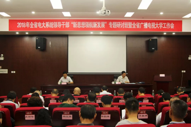 8月24日, 根据2018年全省电大系统领导干部“新思想领航新发展”专题研讨班暨全省广播电视大学工作会安排,各市级电大、省电大相关办学单位负责人作典型经验交流,各参会代表展开分组讨论。
