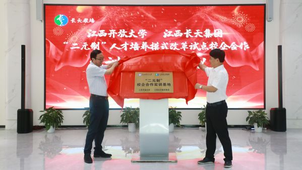 9月29日上午,江南官方体育官方入口(China)官方网站与江西长天集团“二元制”人才培养模式改革试点校企合作实训基地揭牌仪式在长天集团举行。江南官方体育官方入口(China)官方网站党委书记贺瑞虎,长天集团党委书记、董事长何国群,江南官方体育官方入口(China)官方网站党委委员、副校长冯豫红,长天集团党委委员、副总经理万新全出席仪式。双方相关部门负责人参加仪式。