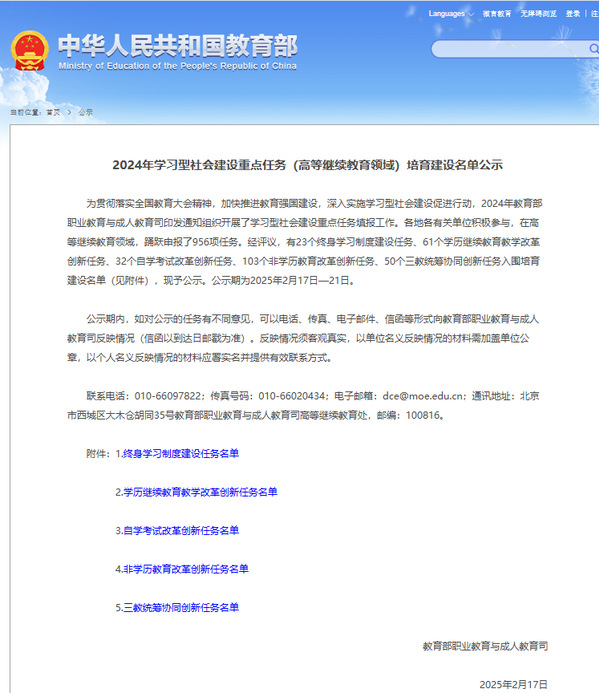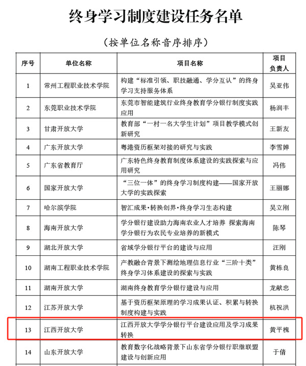近日,教育部公示2024年学习型社会建设重点任务(高等继续教育领域)培育建设名单。江南官方体育官方入口(China)官方网站牵头申报的《江南官方体育官方入口(China)官方网站学分银行平台建设应用及学习成果转换》项目成功入围2024学习型社会重点任务,成为全国23个获批的终身学习制度建设任务之一也是江西省在此领域唯一获批项目
