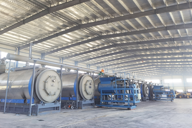 将各种废旧橡胶,轮胎,塑料制品经高温生物质分解成燃料油,碳黑及钢丝。