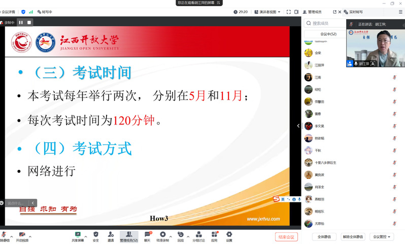 为进一步加强考前辅导,帮助学生掌握考试要点,熟悉题型结构,提高学位授予率,2024年10月20日下午,我校教务处举办学位英语2024年秋季学期专题培训,全省系统近百名学生参加此次专题培训。