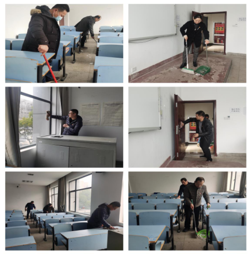 动过程中,各党员同志们干劲十足,纷纷拿起扫帚、簸箕和抹布等清洁工具,大家组织有序,分工明确,互相配合,教室桌面、窗和地面以及卫生死角等进行逐一仔细打扫,经过全体支部党员团结协作和共同努力,考场卫生环境焕然一新。