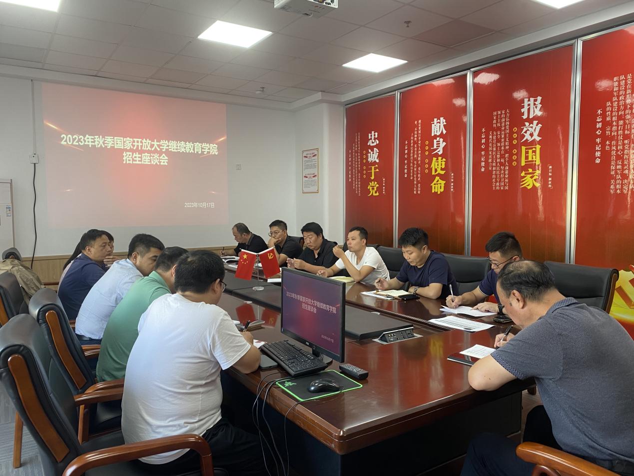 10月18日下午,继续教育学院2023年开放教育招生工作座谈会在南昌信雅培训学校二楼会议室召开。学院副院长但小澍、招生科全体人员及四个学习中心代表参加会议,座谈会由但小澍主持。