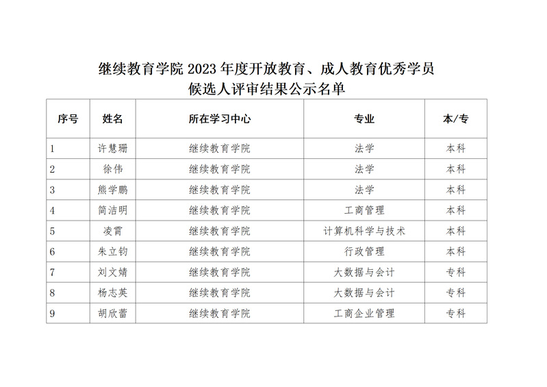 江南官方体育官方入口(China)官方网站2023年度开放教育、 成人教育优秀学员评选结果公示