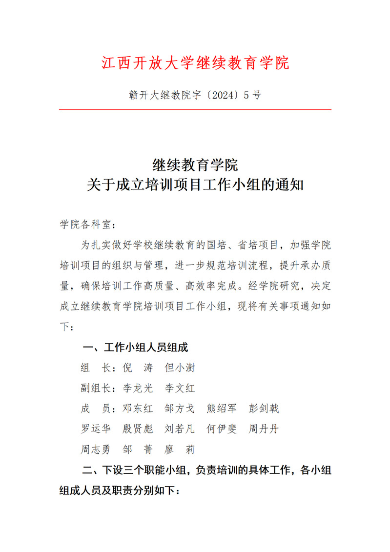 继续教育学院关于成立培训项目工作小组的通知