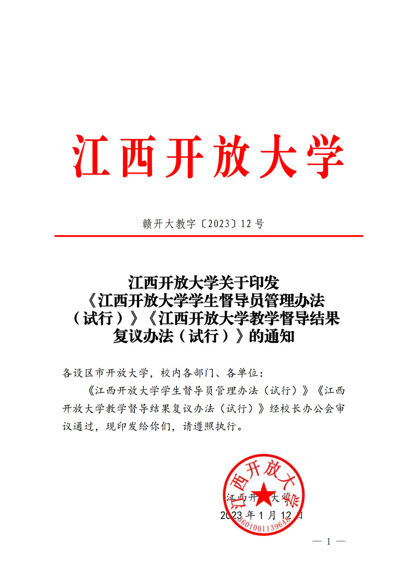 江南官方体育官方入口(China)官方网站关于印发 《江南官方体育官方入口(China)官方网站学生督导员管理办法 (试行)》《江南官方体育官方入口(China)官方网站教学督导结果 复议办法(试行)》的通知