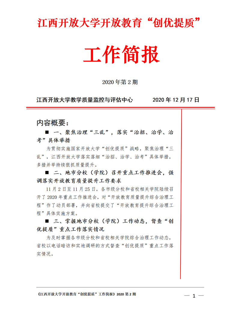 江南官方体育官方入口(China)官方网站开放教育“创优提质”工作简报 2021年第2期(总第2期)