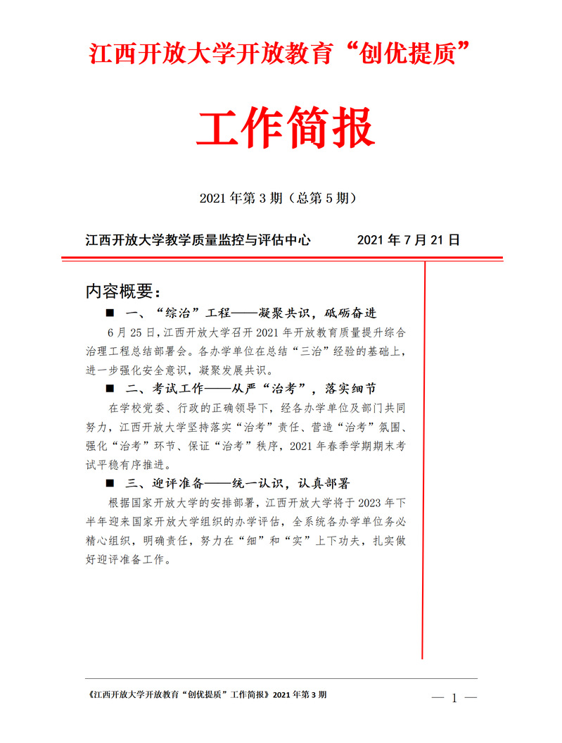 江南官方体育官方入口(China)官方网站开放教育“创优提质”工作简报 2021年第3期(总第5期)