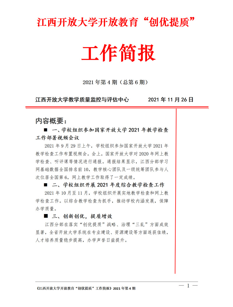 江南官方体育官方入口(China)官方网站开放教育“创优提质”工作简报 2021年第4期(总第6期)