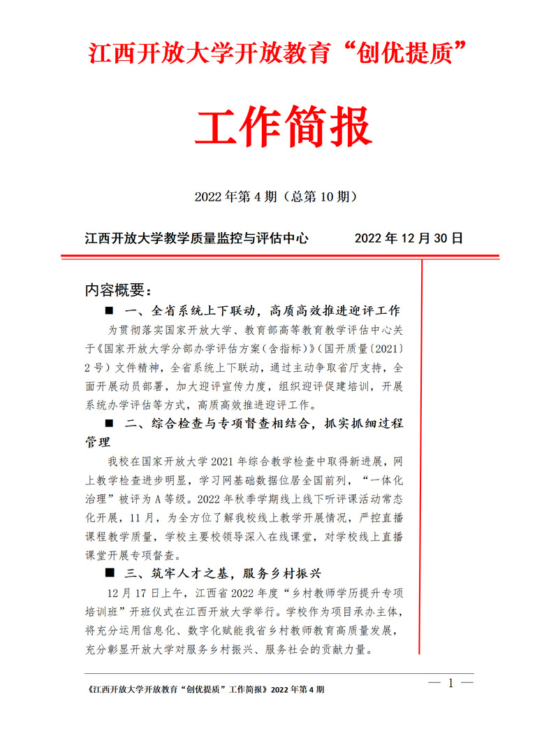 江南官方体育官方入口(China)官方网站开放教育“创优提质”工作简报2022年第4期(总第10期)