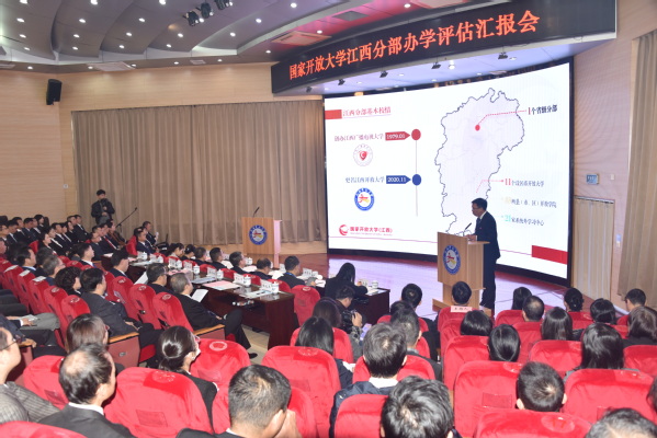 1122上午,国家开放大学江西分部办学评估汇报会在学校行政楼学术报告厅召开标志着教育部教育质量评估中心、国家开放大学专家组对学校实地办学评估工作正式拉开帷幕。