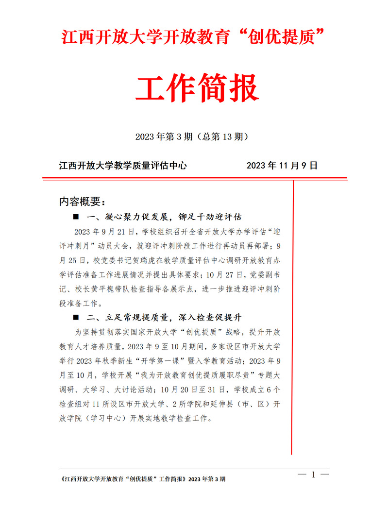 江南官方体育官方入口(China)官方网站开放教育“创优提质”工作简报2023年第3期(总第13期)