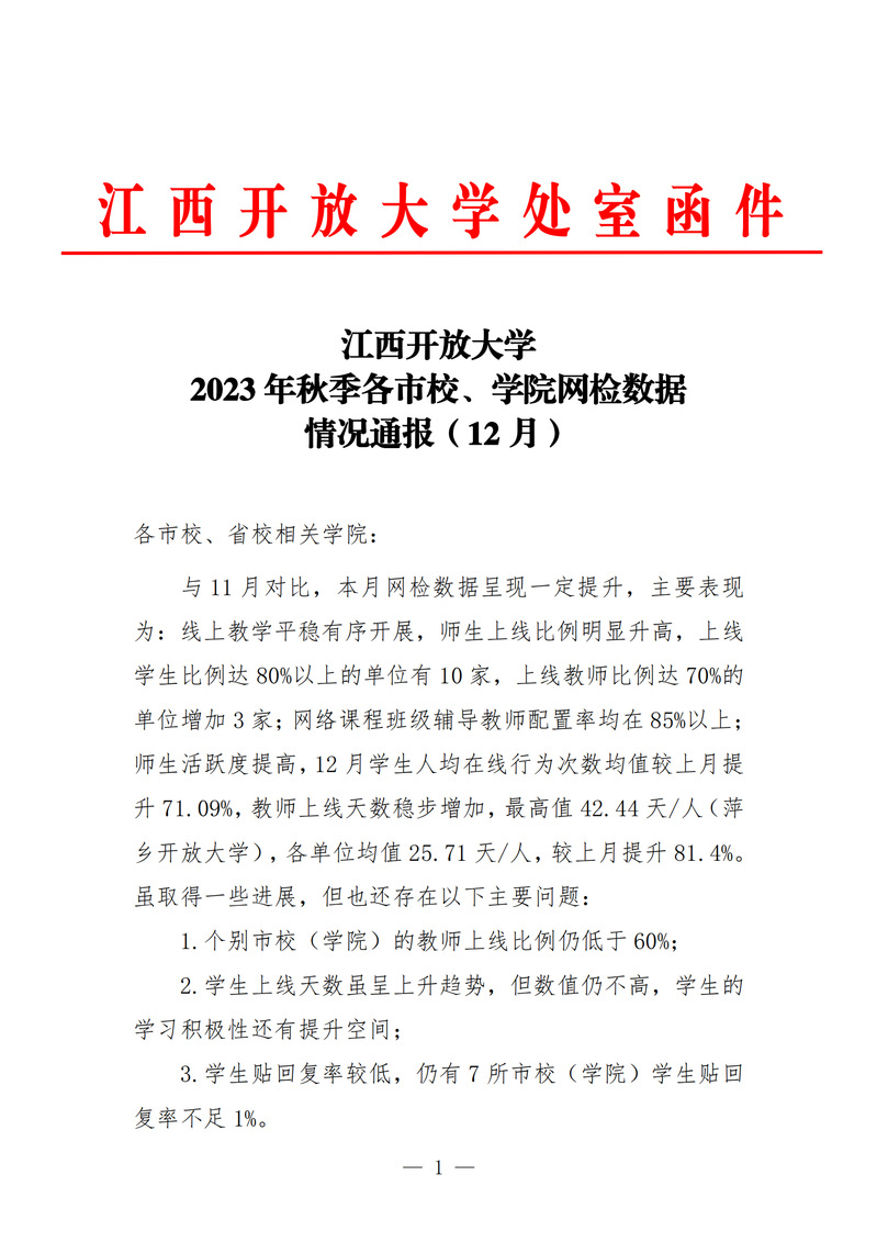 【网检数据】江南官方体育官方入口(China)官方网站2023年12月国开学习网网检数据通报