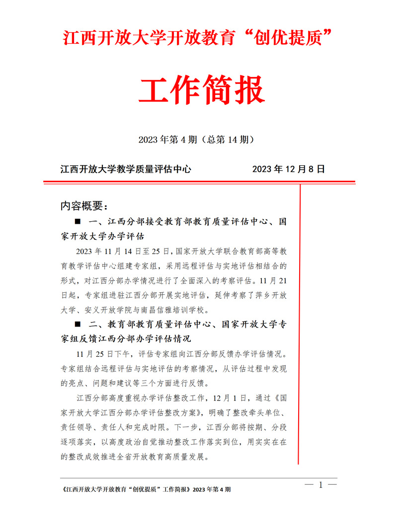 江南官方体育官方入口(China)官方网站开放教育“创优提质”工作简报2023年第4期(总第14期)