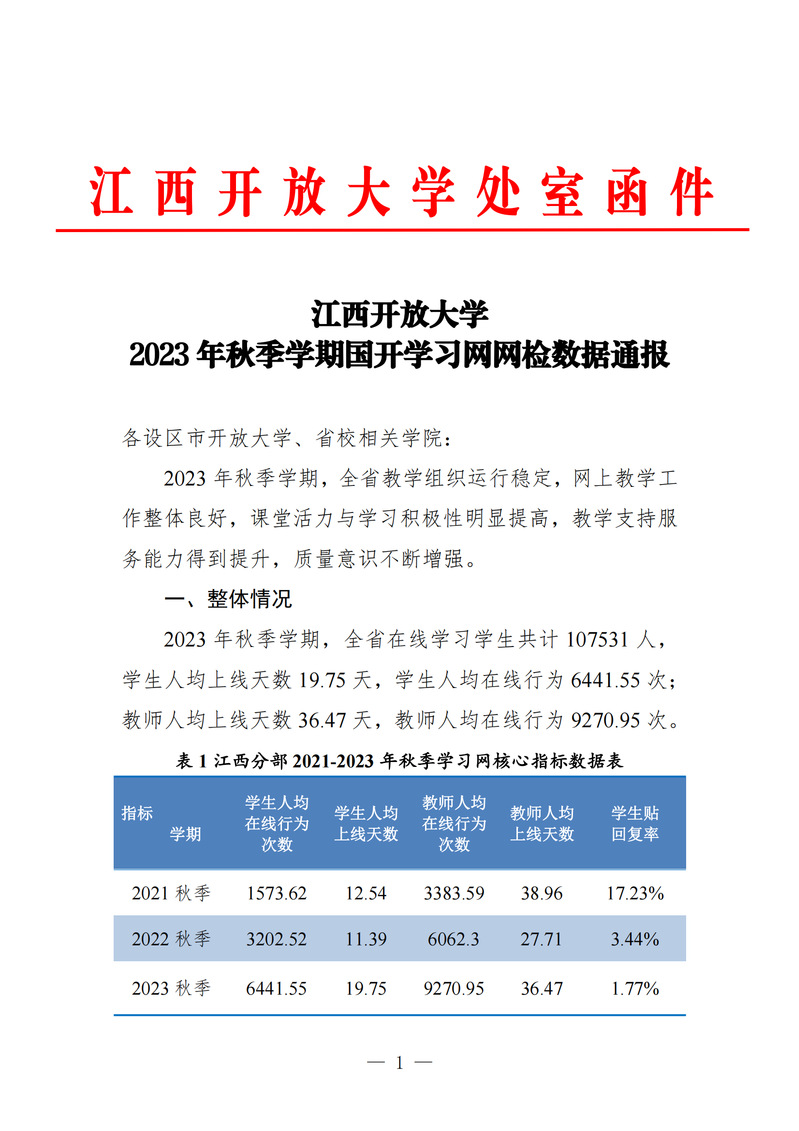 【网检数据】江南官方体育官方入口(China)官方网站2023年秋季学期国开学习网网检数据通报