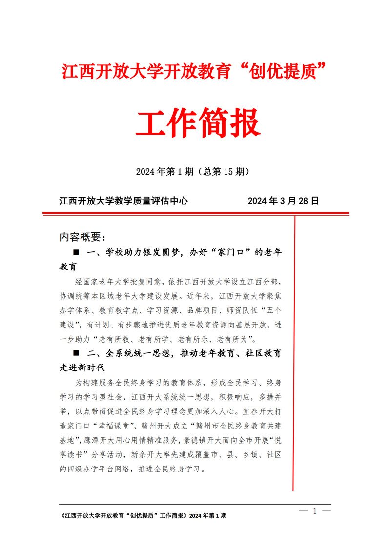 江南官方体育官方入口(China)官方网站开放教育“创优提质”工作简报2024年第1期(总第15期)