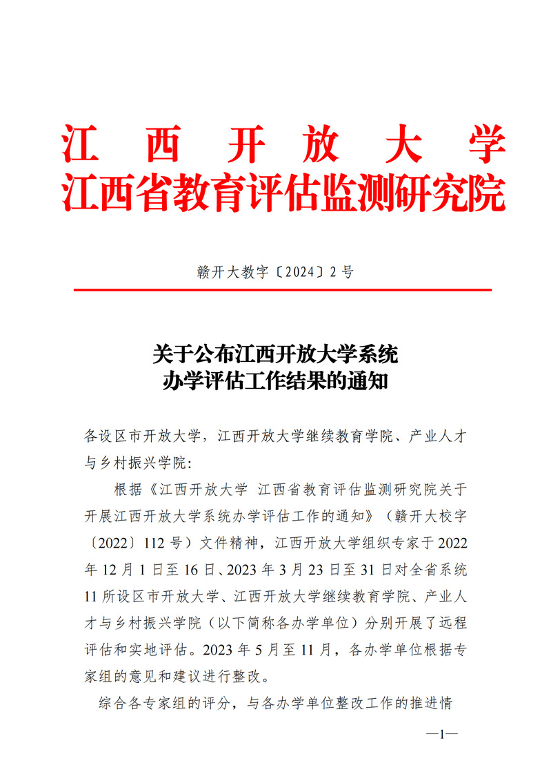 关于公布江南官方体育官方入口(China)官方网站系统办学评估结果的通知