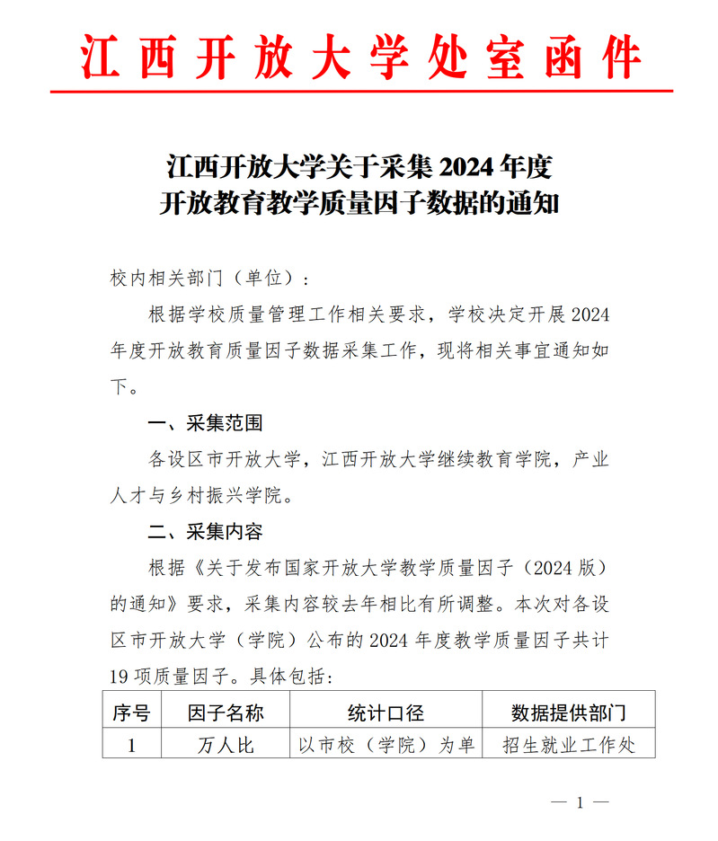 江南官方体育官方入口(China)官方网站关于采集2024年度开放教育教学质量因子数据的通知