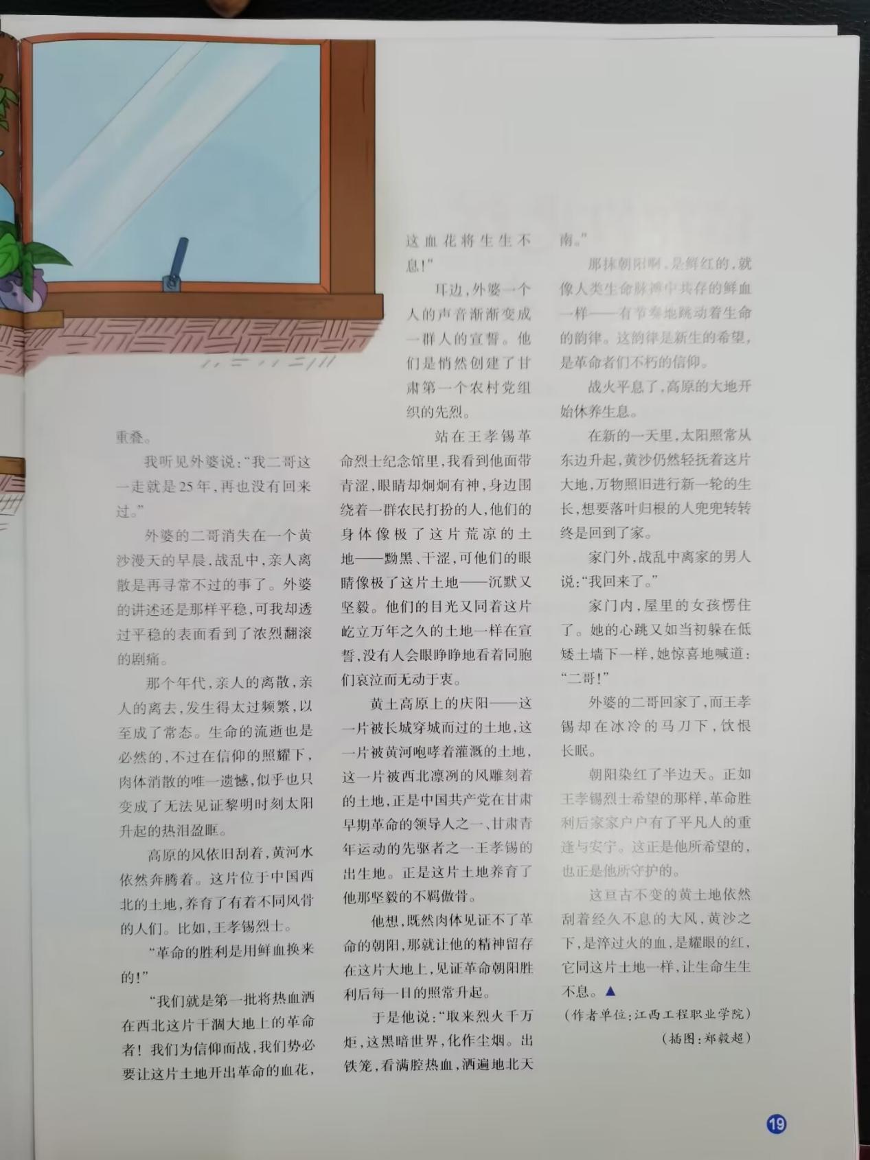段欣悦的党史故事聚焦家乡甘肃庆阳革命先驱王孝锡的革命历程,用生动的语言表达革命者的曲折经历,还原那段厚重的历史。她通过个人的深刻感悟,以文字载体为卷,以百年党史为墨,照映出革命前辈的不朽信仰。经过陈志宏老师精心指导和用心点拨,段欣悦的党史故事得到责编的认可,并顺利通过杂志社的三审。