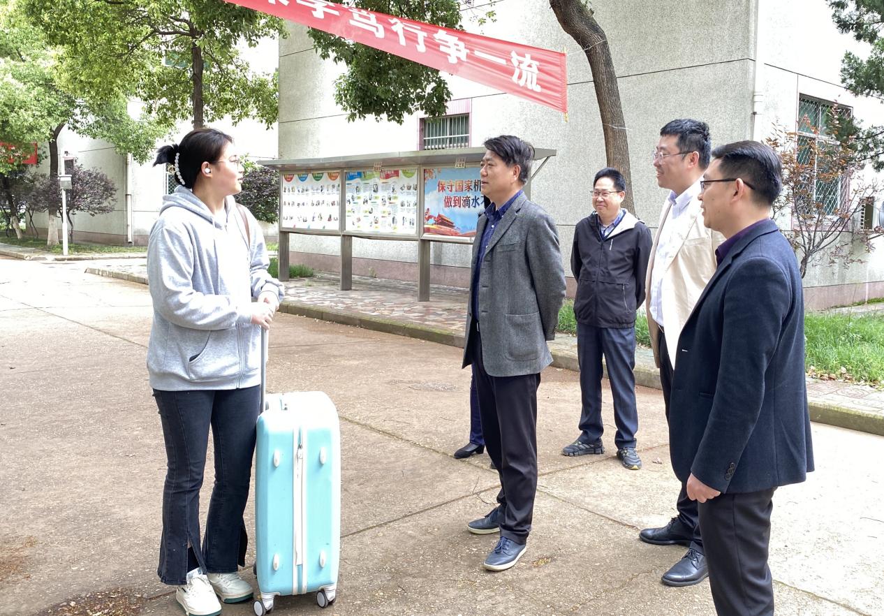 4月29日上午,校党委书记贺瑞虎一行来到青云谱校区,检查“五一”期间各项工作,并与值班工作人员和留校学生亲切交谈。