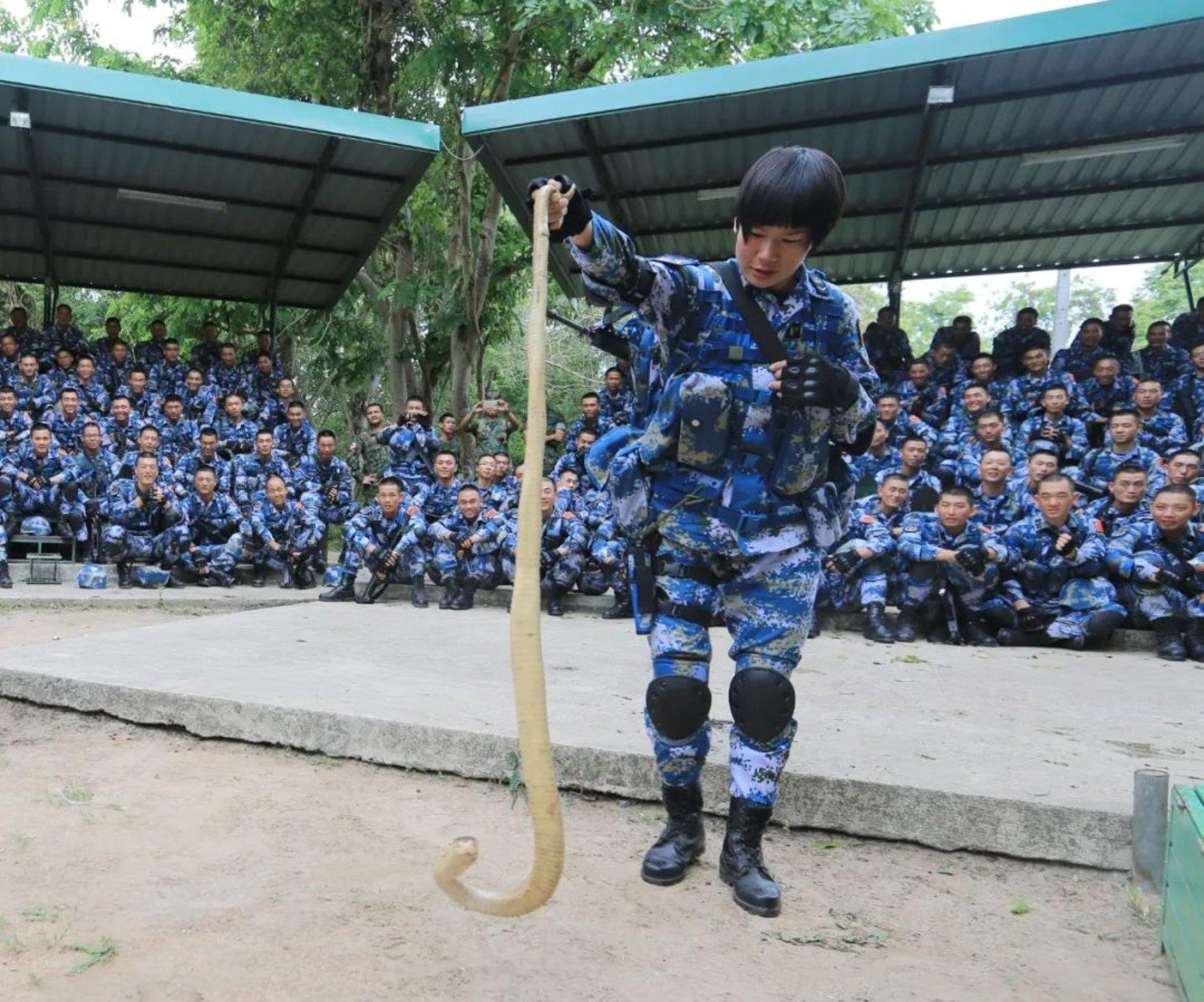 很多网友认识严玲都是通过这张单手抓眼镜蛇的著名照片。当年这个潇洒的小 女兵,如今已在部队服役10年有余,