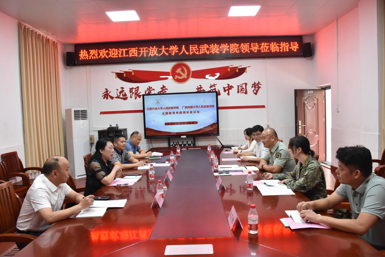 在人文与健康学院深入开展学习贯彻习近平新时代中国特色社会主义思想主题教育之际,结合《基于军事化管理的大学生担当作为基础素质培养研究与实践》课题要求,根据大兴调查研究工作部署,6月12日至14日,人文与健康学院党委副书记、院长杨柳一行赴广西民族大学人民武装学院、云南民族大学政治与公共管理学院(人民武装学院)等2家兄弟单位,围绕学生管理、本科教育合作办学模式和专业建设等问题开展专题调研。