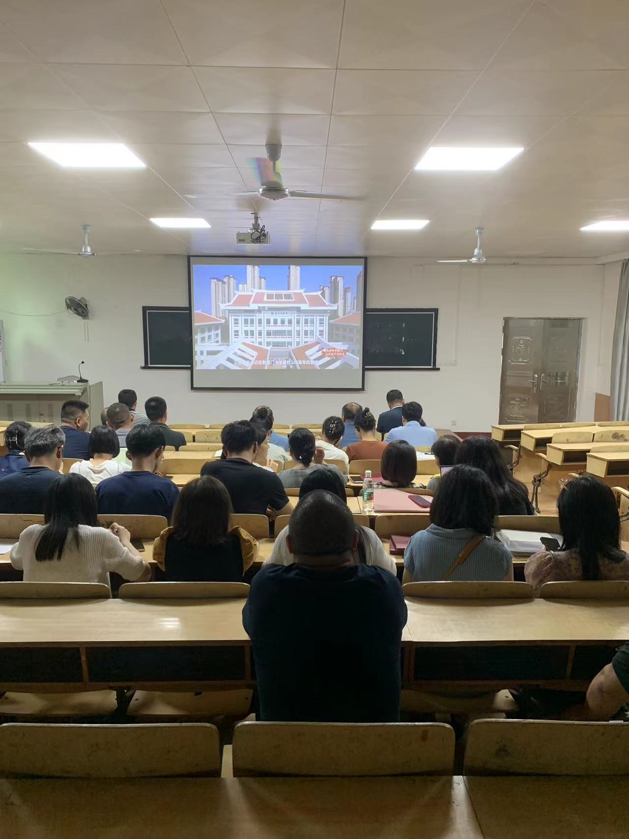 7月5日16:00,由教育部思想政治工作司指导的“铸魂增智育新人,正风促干书新篇”2023年高校党组织示范微党课公开直播,人文与健康学院组织全体党员干部集体收看直播,学习由厦门大学、山东大学、华中科技大学、重庆大学、西南交通大学五所高校师生带来的“高校党组织示范微党课第七讲”。