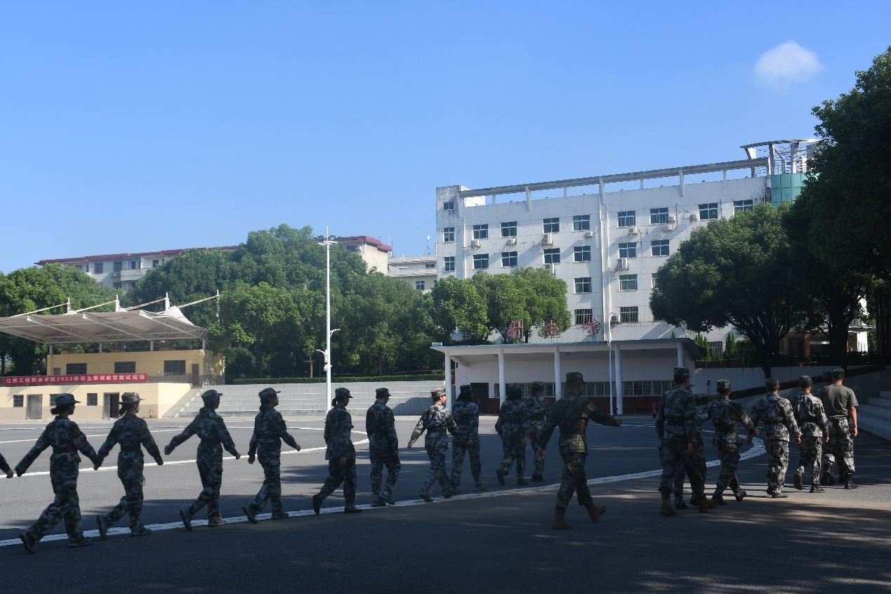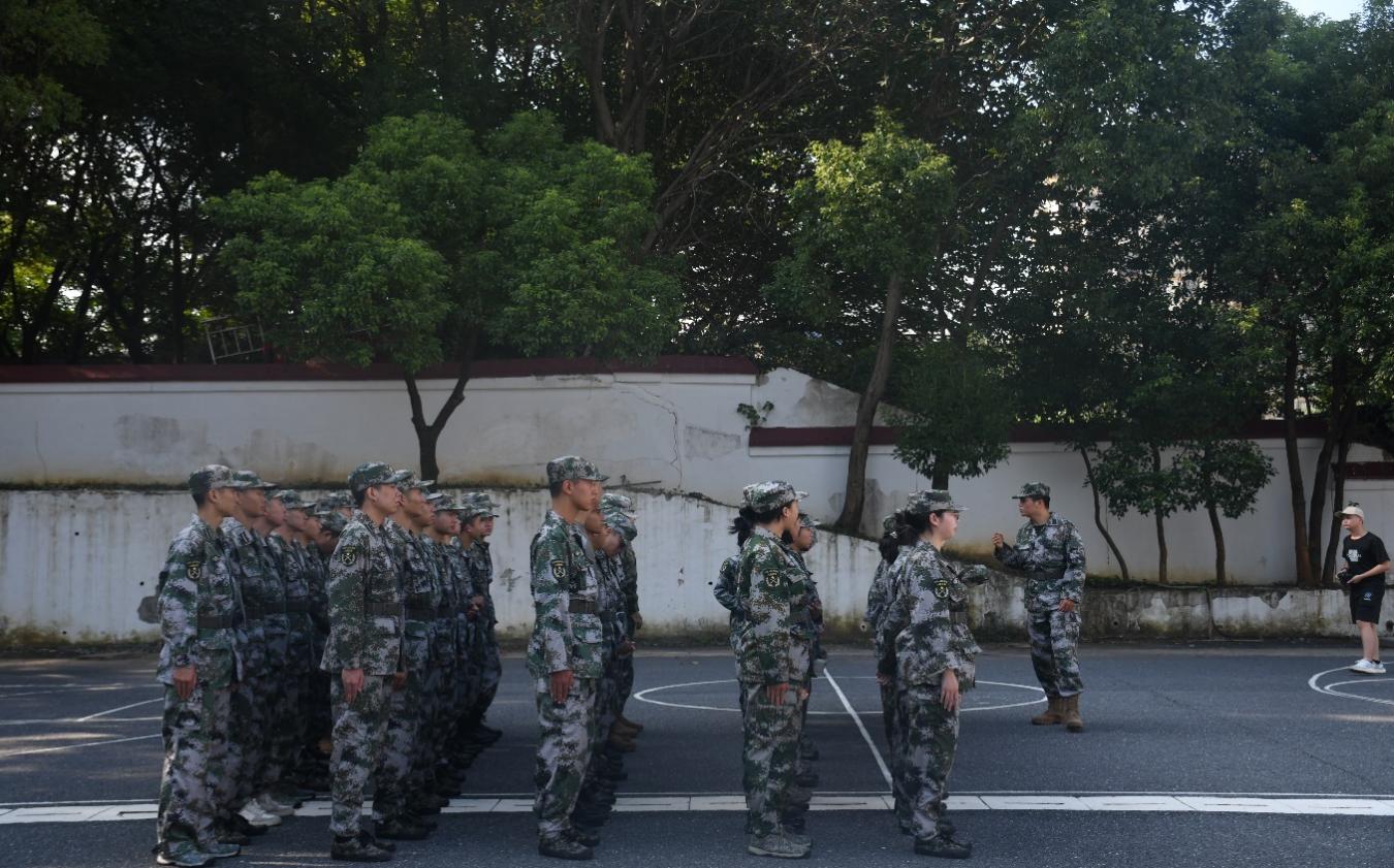 那一声声口令,都是从沙哑的嗓子中喊出;一个个动作,都在汗流夹背的不懈训练里完善。引人注目的迷彩色,在校园中格外亮眼,上课路过的同学们纷纷驻足观看。
