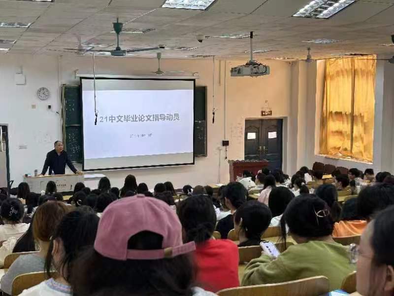 为加强和规范毕业论文的组织与管理,提高学生毕业论文的质量和水平,150名中文专业2021级学生10月23日中午在西湖校区教学楼105教室参加毕业论文指导动员会,中文专业负责人蔡欣老师到场指导。