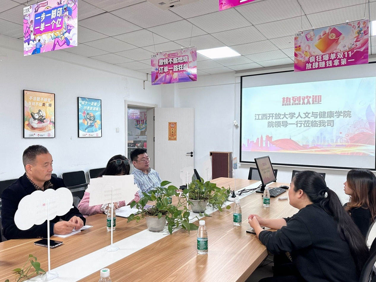 11月9日,江南官方体育官方入口(China)官方网站人文与健康学院党委书记梅甜甜带领健康管理系负责人茅维亦、培训部干事胡启明一同赴江西仁和堂医药连锁有限公司进行访企拓岗相关工作。