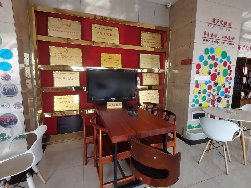 座谈会后,胡克伟陪同梅书记参观了公司VR设计体验区、装修样板间和设计工作区。鸿基装饰集团张副总、余副总、中文与艺术系负责人、专业教师等4人参加了座谈会。