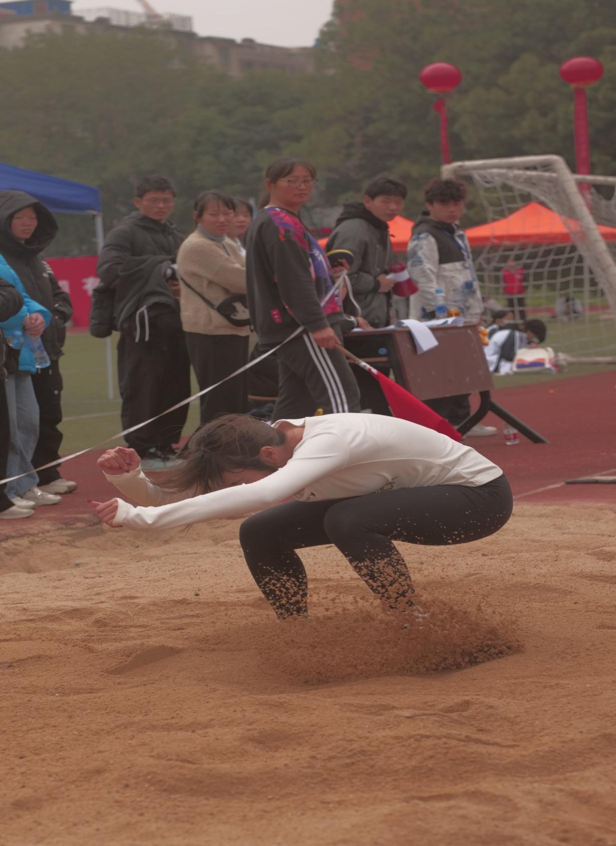 三级跳:助跑、踏跳、腾空、落地,一条美丽的弧线,一个轻捷的身影,从眼前掠过踏在沙坑。我院女子组在三级跳中有三人进入决赛在决赛,并取得了第二名、第三名和第四名;男子组有两名同学进入决赛,并且取得了第一名和第三名。