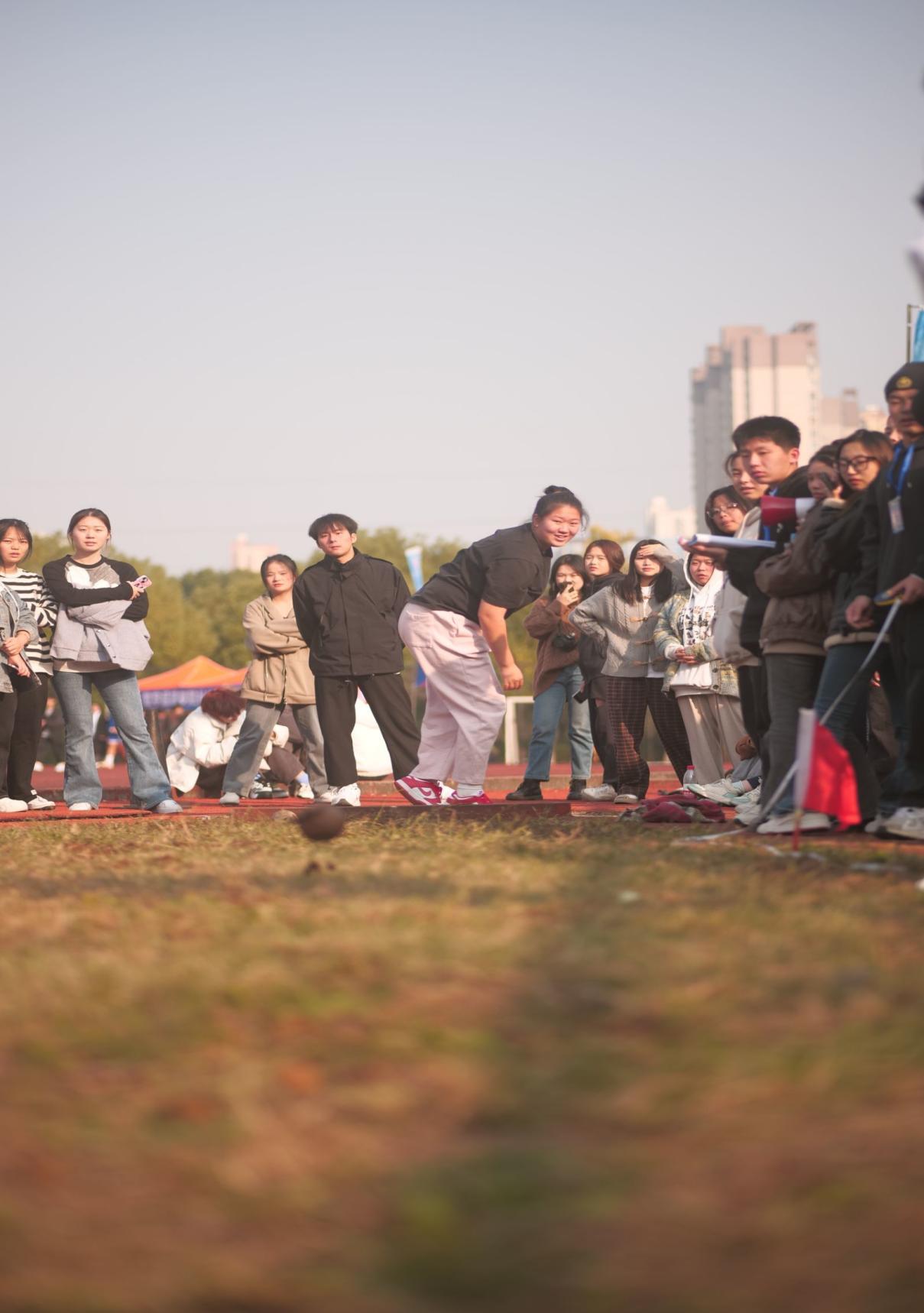 4×100接力:四个完美的弧线被一根小小的棒儿连接,砰的一声,一扬尘土四散飞起,徐徐落下!我院共有女生两支队伍参加此项目,人文2队取得第四名的佳绩。人文1队斩获第一名并打破校记录再创新高!男生两支队伍进入前八,其中人文1队荣获第二