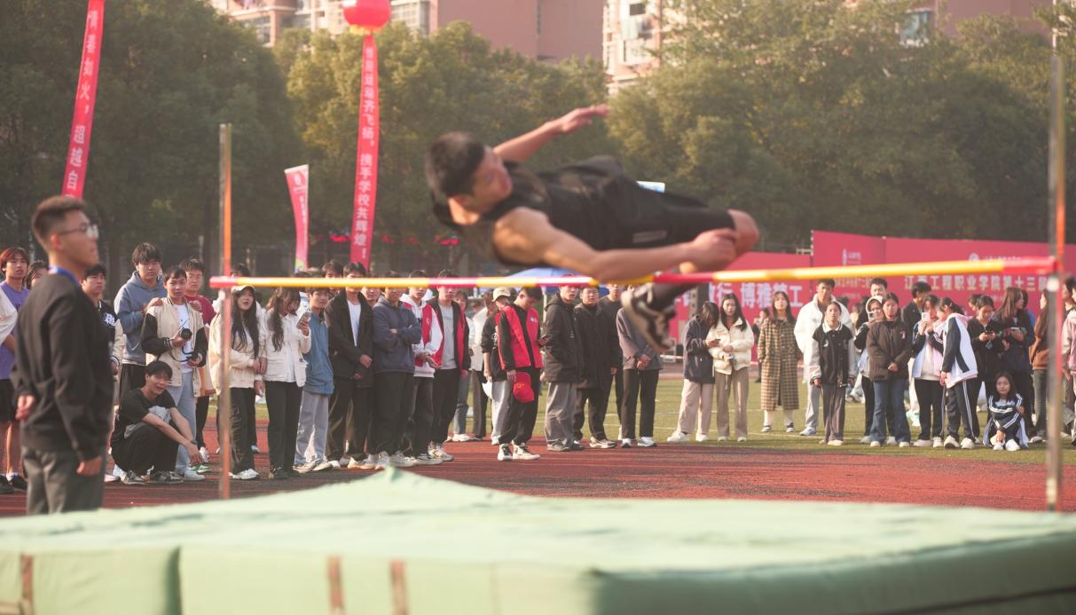 跳高:你像一只矫健的飞燕轻捷地掠过了横竿,顿时,全场晴天霹雳般响起一片欢呼声。我院男子女子均在跳高中摘得桂冠!我院选手陈翊婷打破校记录再创新高!