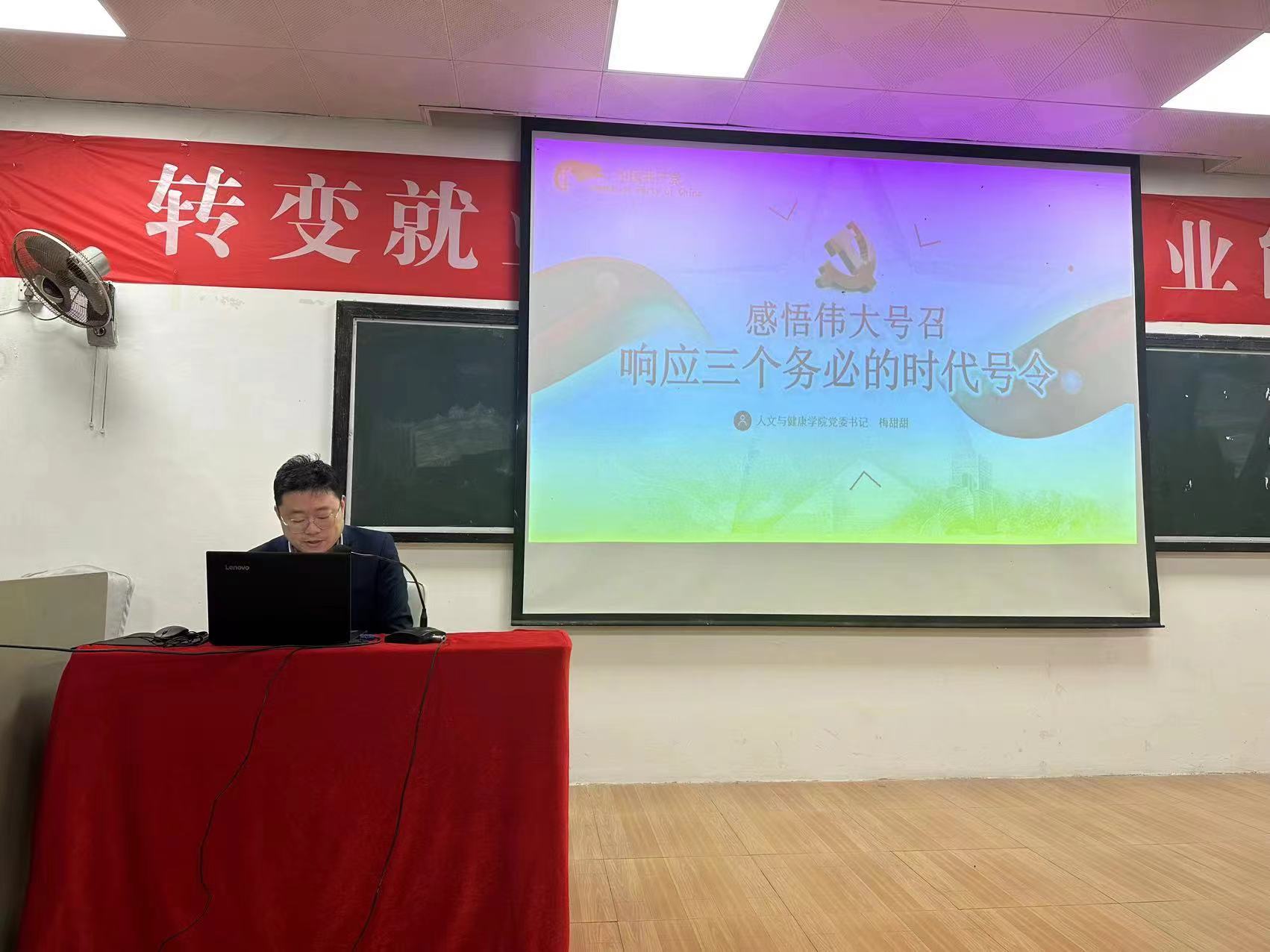 梅书记深情勉励同学们,“时代的责任赋予青年,时代的光荣属于青年。实现中华民族伟大复兴给了青年前所未有广阔舞台,就是要把青春的优势、干劲、风貌发挥出来、展现出来,真正做到信念坚、知识广、学习实、品德优,用奋斗点亮青春火花,争做想作为、敢作为、善作为、能作为的新时代优秀青年学生,只要我们牢记总书记谆谆教诲,践行“强国有我,请党放心”誓言,就一定能在新时代新征程上留下无悔奋斗足迹