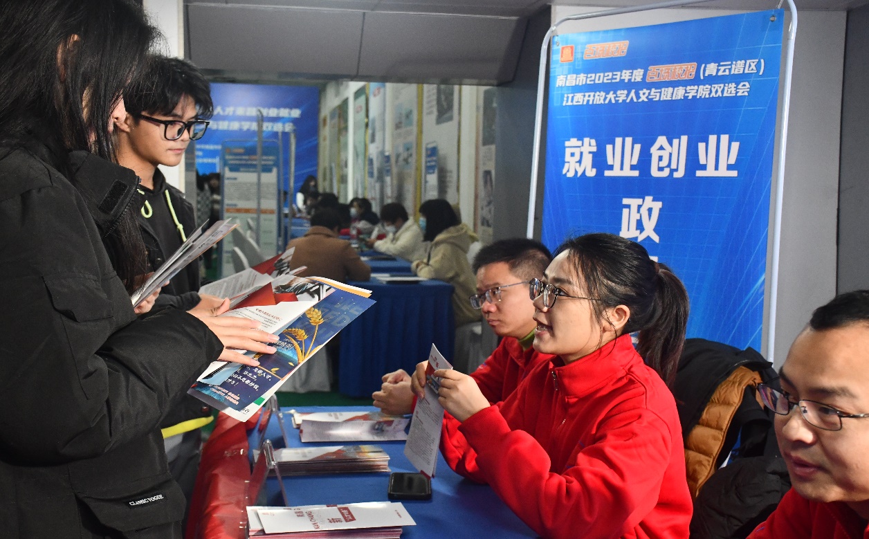 此次双选会,人文与健康学院党委高度重视,精心组织,相关部门积极协调配合,多方整合资源,纵横拓展,深度挖掘优质用人单位和就业岗位。活动组织了中国电建集团江西省电力建设有限公司、江西洁佳城市生活服务有限公司、江西鑫汇源医药有限公司、江西阳光乳业集团有限公司等34家企业参会,提供了运维员、电商专员、会计、视频剪辑师、储备干部等就业岗位954个。