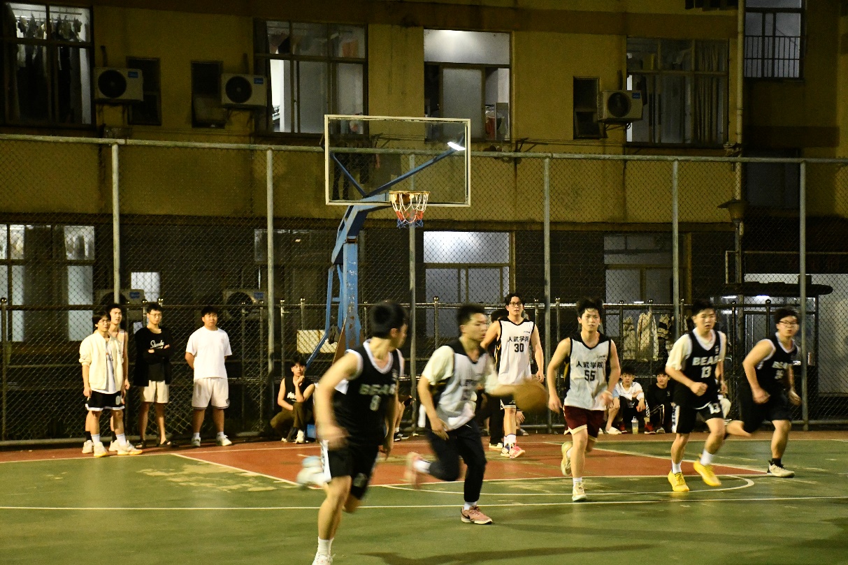 本次比赛严格按照国际篮球比赛标准,分为两场比赛决出冠、亚、季军。第一场季军争夺赛,22人武VS 22计网,第二场冠军总决赛,21公管VS 22计应。比赛开始前,我院街舞社带来了活力四射的街舞表演,场内响起了热烈的欢呼声与呐喊声,燃起了大家的激情。