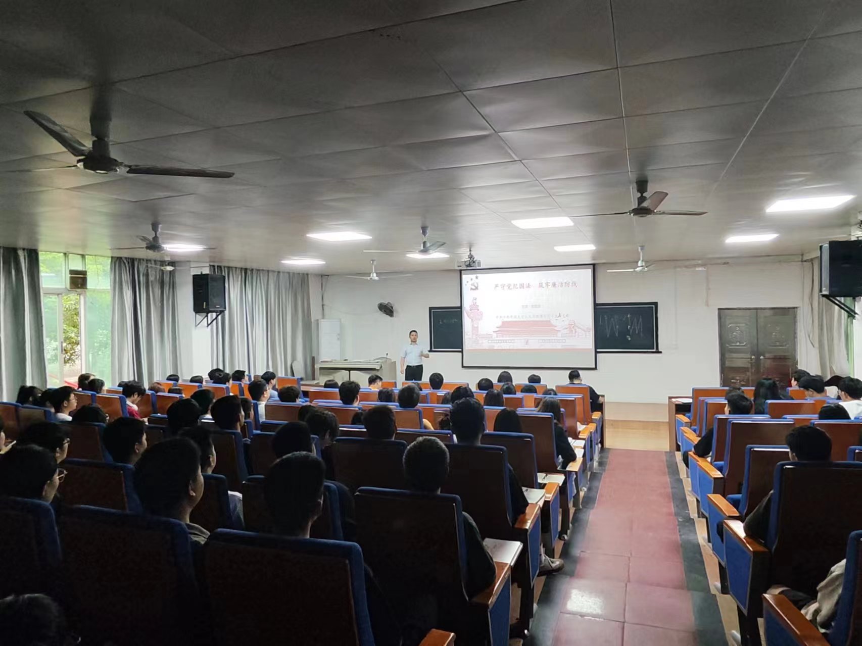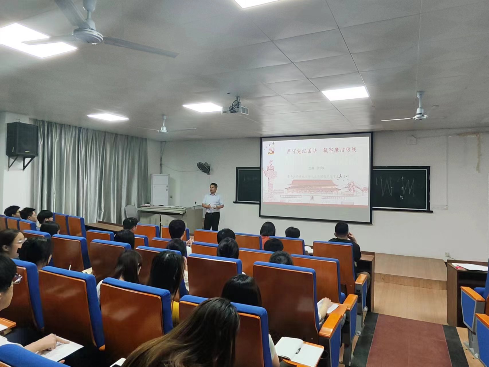 2024年5月30日下午,人文与健康学院学生一支部在学院教学楼1101成功举办了一场主题为“严守党纪国法 筑牢廉洁防线”的党课活动。本次党课由支部书记张双庆主讲,旨在加强支部成员对党的纪律规定的认识,提高党性修养和自律意识。