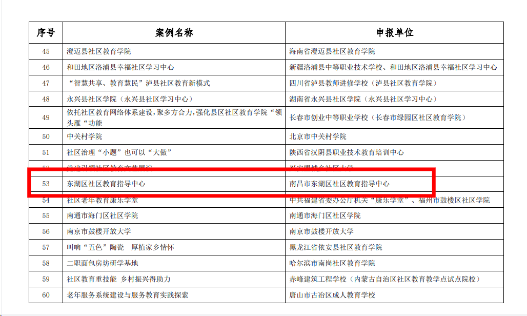 近日,从《教育部办公厅关于推介2023年县域社区学习中心典型案例和社区教育品牌课程的通知》(教职成函〔2024〕8号)获悉:2023年县域品牌社区学习中心典型案例和品牌课程已完成了评审和公示,我省组织申报的东湖区社区教育指导中心典型案例(南昌市东湖区社区教育指导中心)入选县(市、区)社区教育学院样板案例;《银龄智慧学堂》(九江职业技术学院)、《亲子共读,情悦你我》(江西旅游商贸职业学院)、《高中生心理特点及家校合作》(江西省安义中学)、《成人健康教育课》(南昌市经济技术开发区蛟桥街道丽景苑社区)、《八段锦》(江西省安义县职业技术学校)5门课程入选县域社区教育品牌课程。