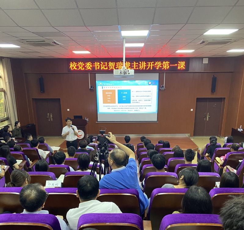 9月27日下午,校党委书记贺瑞虎以“技能铸就辉煌 立志报效祖国”为题,在西湖校区为学生讲授“开学第一课”。贺书记紧紧围绕学生关注的学业规划、就业规划、人生规划等热点问题讲授“开学第一课”,在我院学生中引发热烈反响,必将激励更多学子以技能点亮精彩人生、实现报国之志。聆听报告后同学们纷纷表达了自己的感悟和体会。